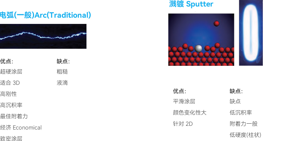 The splitting arc used by Kehui uses a higher current than traditional arcs to improve the evaporation rate of the target material; By using a magnetic field to control the current, the current is moved across the entire surface of the target material, reducing the average current (A/mm ²) and thus reducing droplets, improving coating quality.